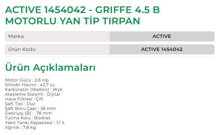 Active 1454042 - GRIFFE 4.5 B Motorlu Yan Tip Tırpan