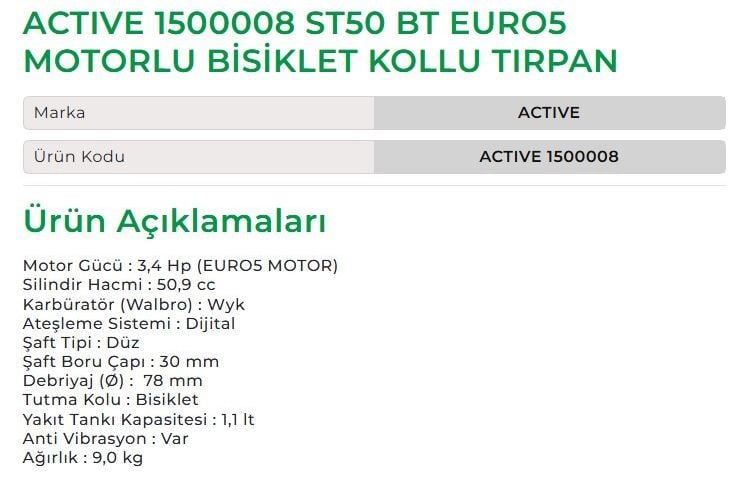 Active 1500008 ST50 BT EURO5 Motorlu Bisiklet Kollu Tırpan