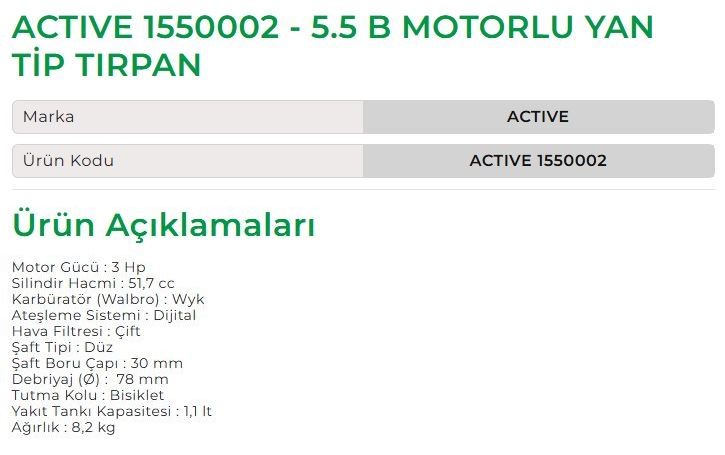 Active 1550002 - 5.5 B Motorlu Yan Tip Tırpan