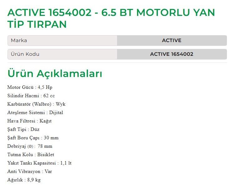 Active 1654002 - 6.5 BT Motorlu Yan Tip Tırpan
