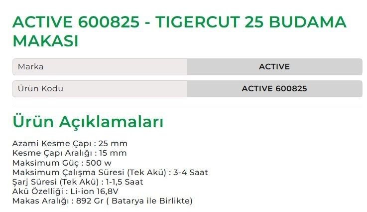 ACTIVE 600825 - TIGERCUT 25 BUDAMA MAKASI