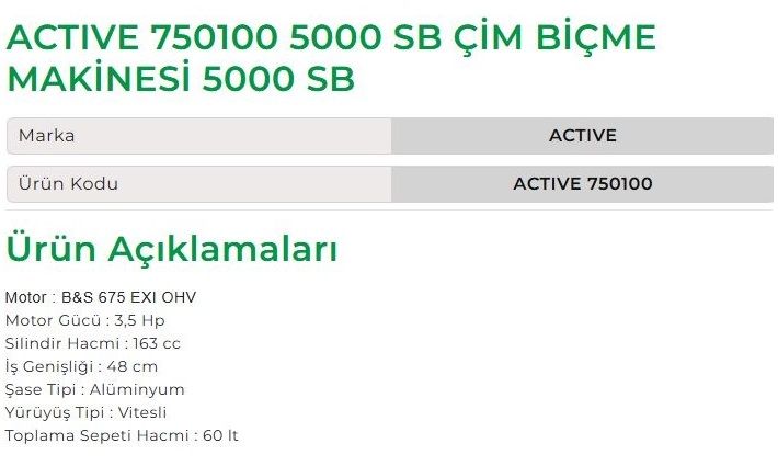 Active 750100 5000 SB Çim Biçme Makinesi