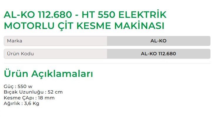 AL-KO 112.680 - HT 550 Elektrik Motorlu Çit Kesme Makinesi