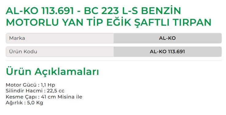 AL-KO 113.691 - BC 223 L-S Benzin Motorlu Yan Tip Eğik Şaftlı Tırpan