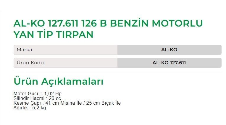 AL-KO 127.611 - 126 B Benzin Motorlu Yan Tip Tırpan