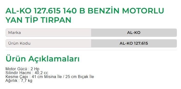 AL-KO 127.615 - 140 B Benzin Motorlu Yan Tip Tırpan