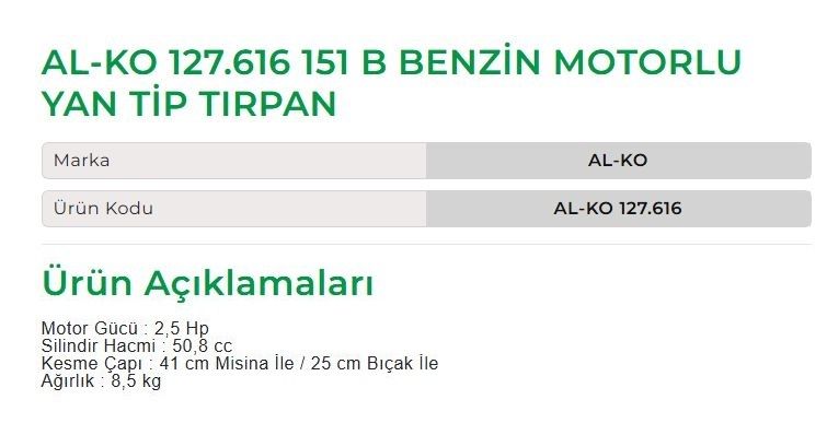 AL-KO 127.616 - 151 B Benzin Motorlu Yan Tip Tırpan