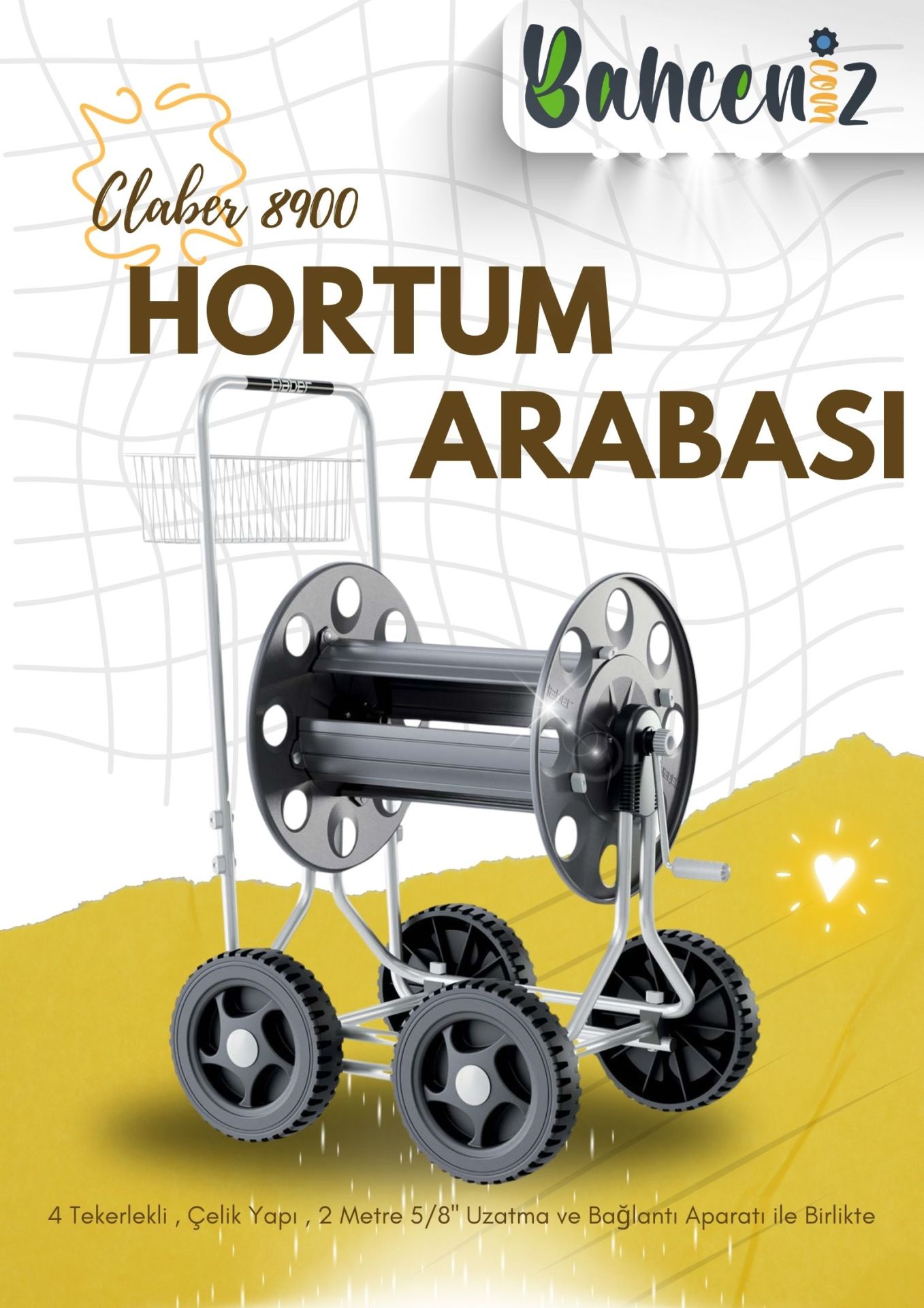 Claber 8900 Hortum Arabası Jumbo 165m Kapasiteli ./4 Tekerlekli