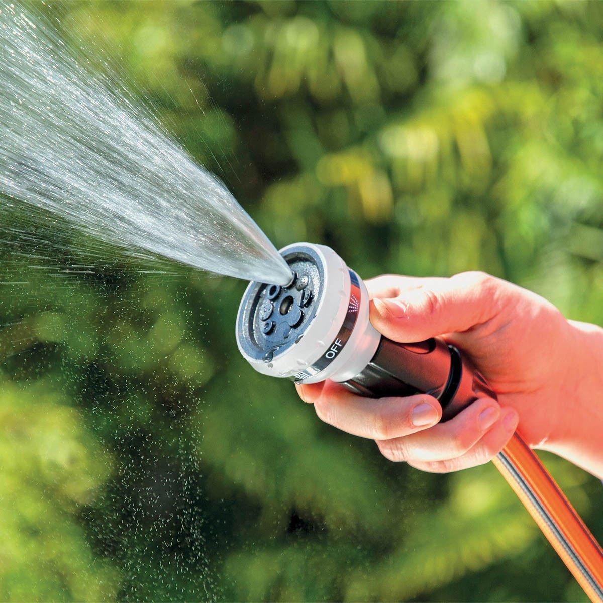 Toksik olmayan, yüksek kaliteli malzemeler. Set, 3/4” musluk bağlantısı, otomatik kaplinler ve 6 farklı jet (+ 2 KAPALI) ile çok işlevli bir püskürtme başlığı ile birlikte gelir.