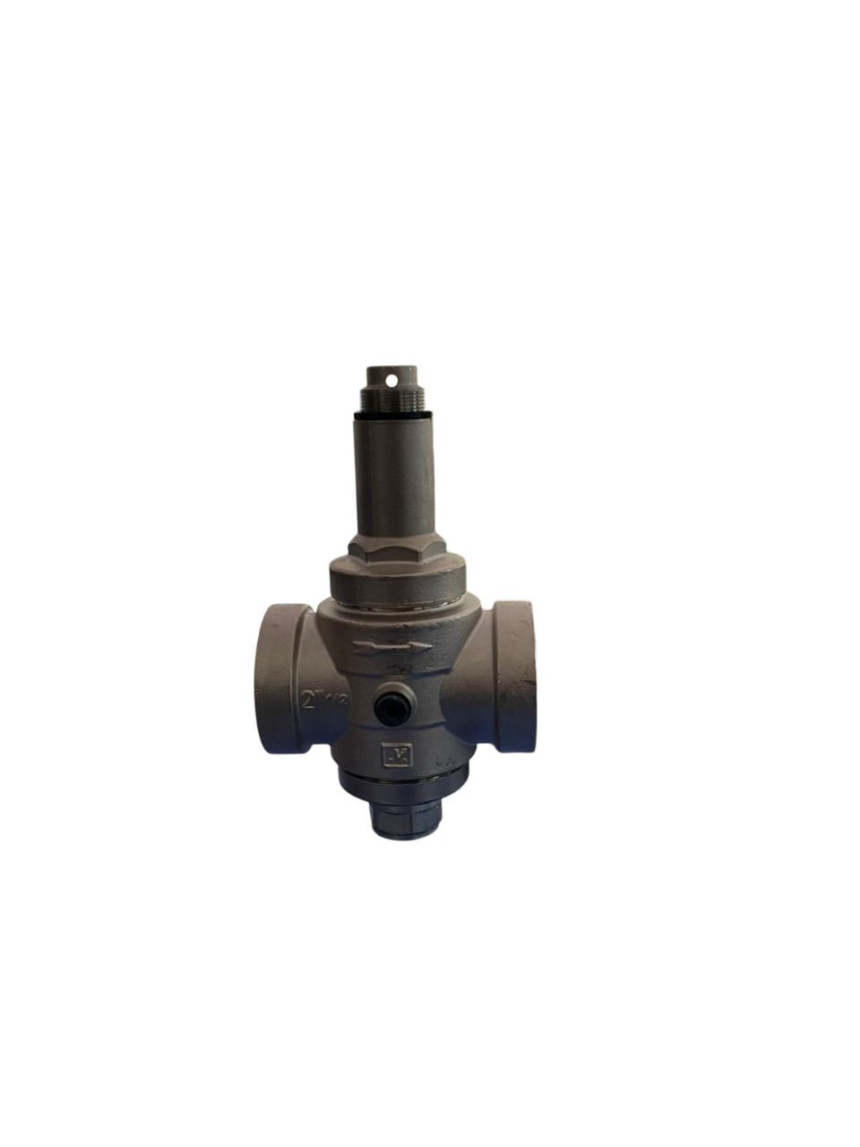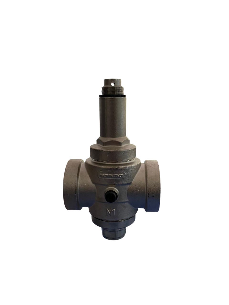 FF dişli pirinç basınç düşürücü, pistonlu ve çıkış yönündeki basınç dengeleme sistemli, paslanmaz çelik yuvalı.